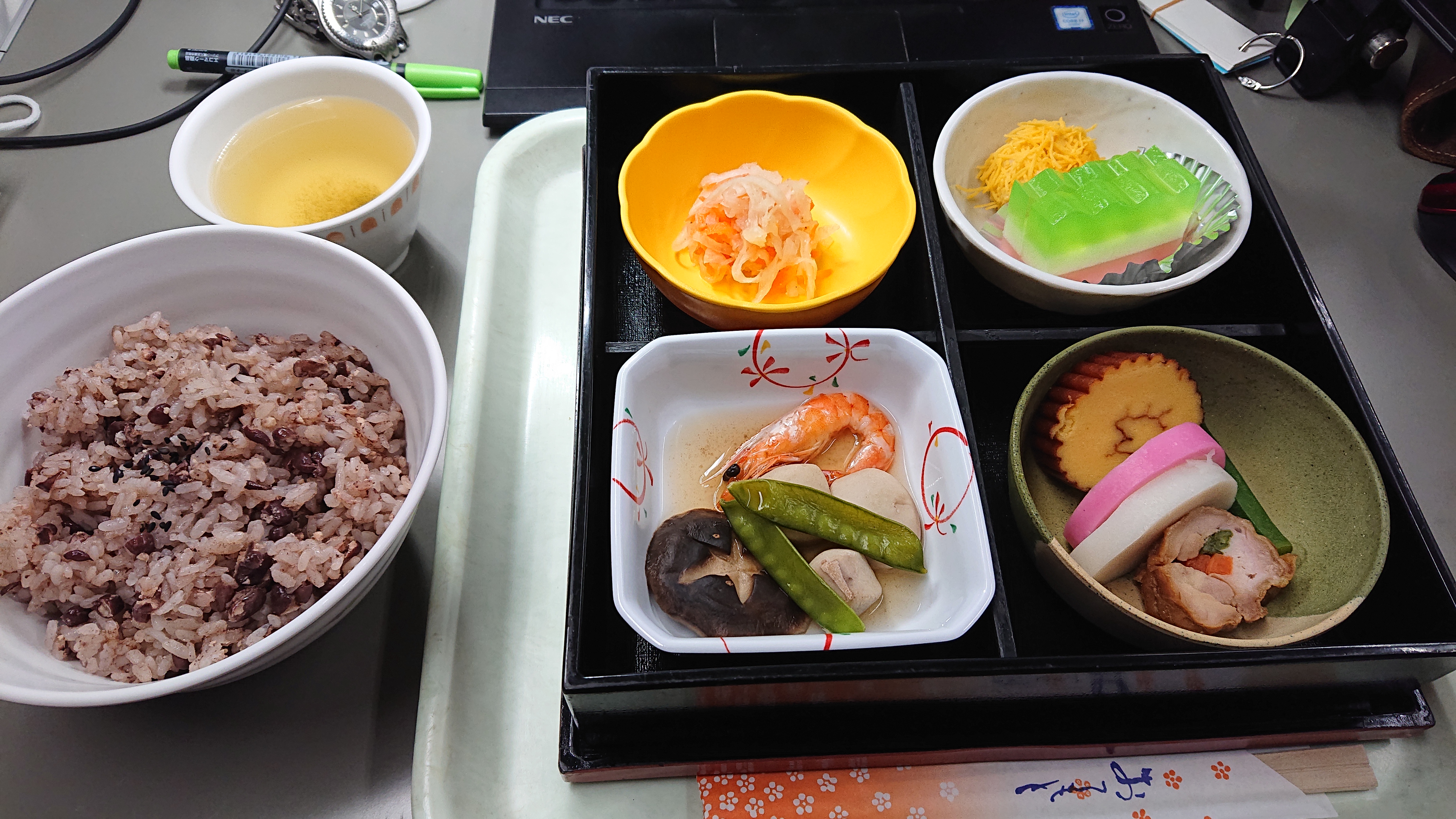 Cherry blossoms become a popular topic of conversation in spring. Have you ever heard of “cherry blossom front?” Humans cultivated the well-known cherry tree strain of “Somei-yoshino”, which is sterile. Its reproduction, which needs help from humans, has no mutations. All Somei-yoshino trees have the same DNA and bloom with one accord according to climatic conditions, like temperature. As the temperature goes up, the Somei-yoshino starts blooming in Okinawa, the south of Japan. The area in which Somei-yoshino blooms has to align horizontally. In Japan, this line, called the "cherry blossom front," extends up to Hokkaido. The movement of the cherry front is often a news item. The cherry blossoms are at their best now at my place. The picture shows today's lunch offered to the patients in my hospital. Holding the party under the cherry trees in full blossom is a feature of spring. Inpatients, however, are not allowed to go out. The staff members hope that inpatients can enjoy the cherry blossoms through the window. It is the very least we can do.